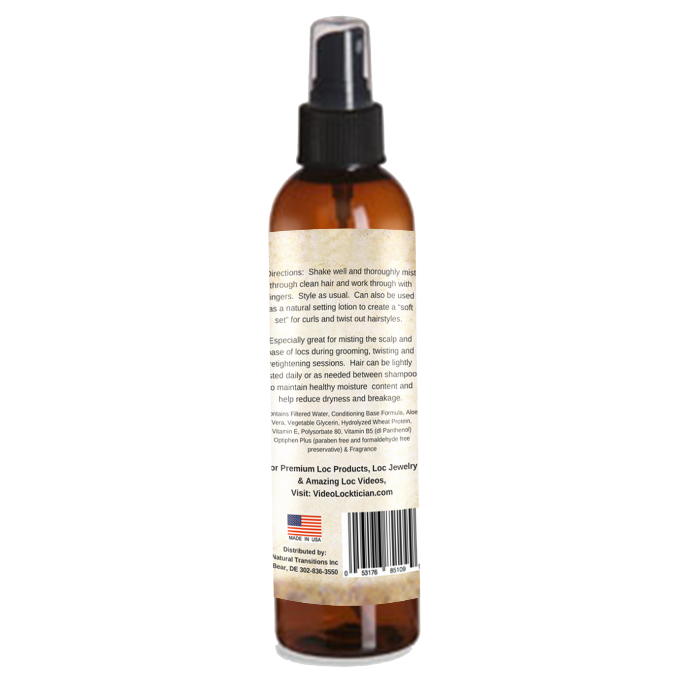 Directions: Shake well and lightly mist throughout your locs or natural hair daily or as needed. Does not contain petroleum, mineral oil or alcohol.