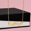 This stylish necklace features a cursive name design suspended on an 16”-18” adjustable cable chain, making it both personal and beautiful! Your necklace will be custom made upon ordering in the name or word of your choice, with up to 11 characters. It's a gift that they will surely want to keep close to their heart forever!